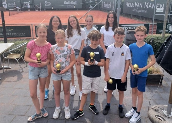 In de voorjaarcompetitie tennis zijn twee jeugdteams kampioen geworden: het team Groen met Sarah, Merel, Maurits, Felix en Ryan en bij de meisjes in de categorie 13-17 jaar het team met Lina, Jaynaika, Elma en Willemijn. Van harte gefeliciteerd met jullie mooie prestatie!