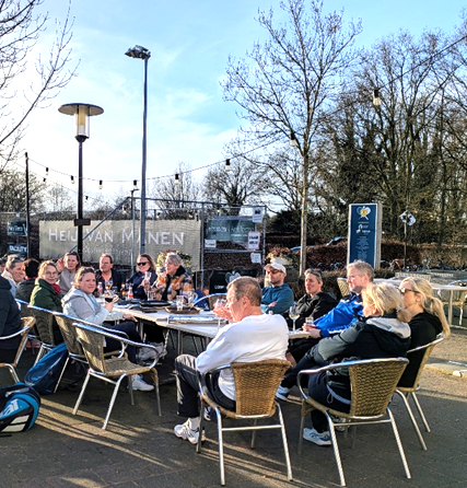 In het tennis-gezelligheidstoernootje werden de spelers in drie partijen qua samenstelling door elkaar gehusseld. Het werden leuke en sportieve wedstrijden. De zon scheen en de eerste korte broeken werden al op de baan gesignaleerd. Na afloop konden we zelfs heerlijk buiten op het terras zitten. Het thema was après-ski en na afloop kregen we van Proost een apfelstrudel met slagroom.