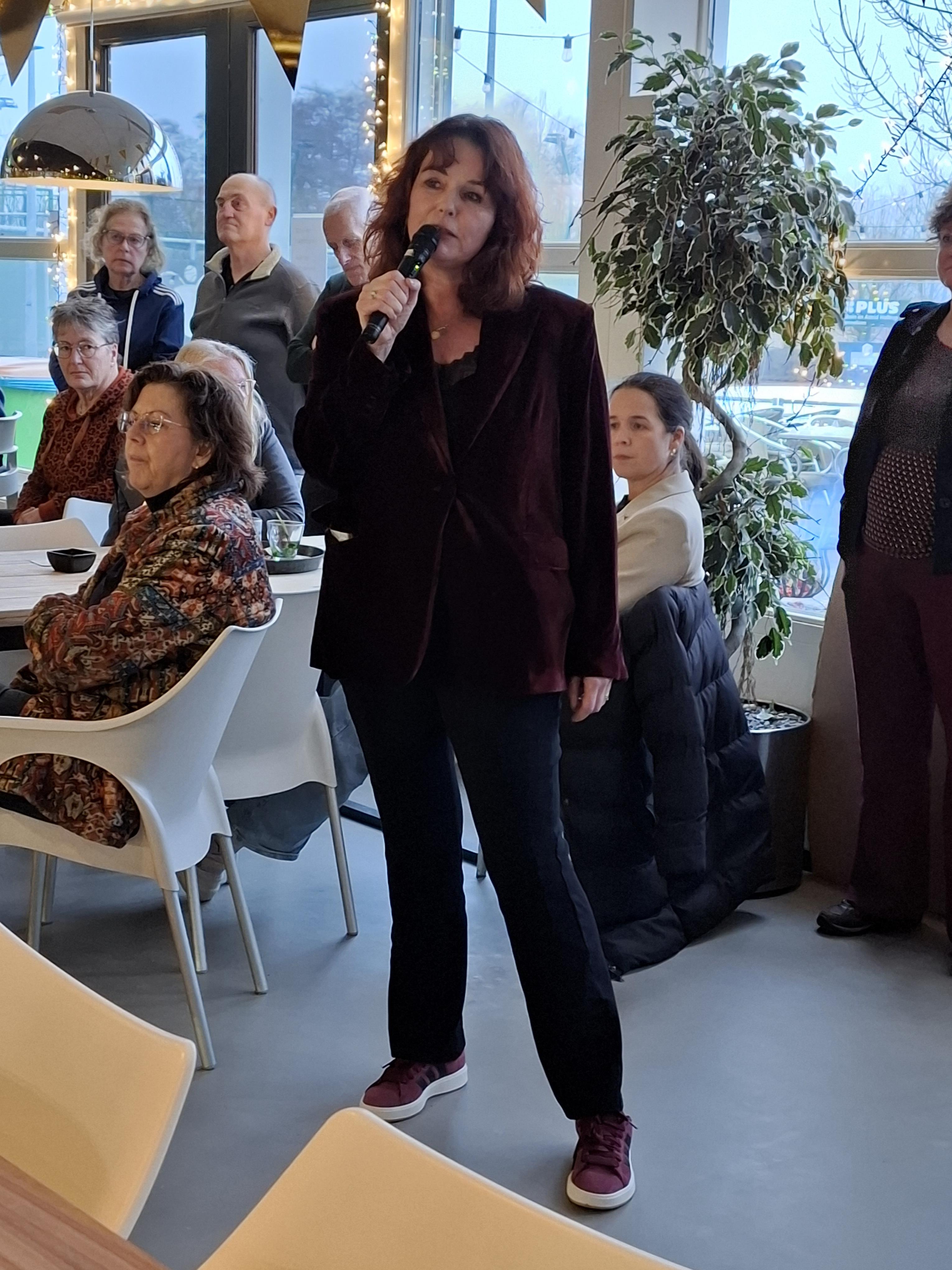 Petra Busser, de voorzitter van de jubileumcommissie, sloot het jubileumjaar 2025 af. Ze memoreerde in een kort overzicht de vele activiteiten, die het hele jaar hebben plaatsgevonden. Als laatste actie werd een erg leuke video vertoond met opnamen van alle activiteiten. Onder het genot van een hapje en drankje werd de jaarlijkse bijeenkomst nog geanimeerd voortgezet.