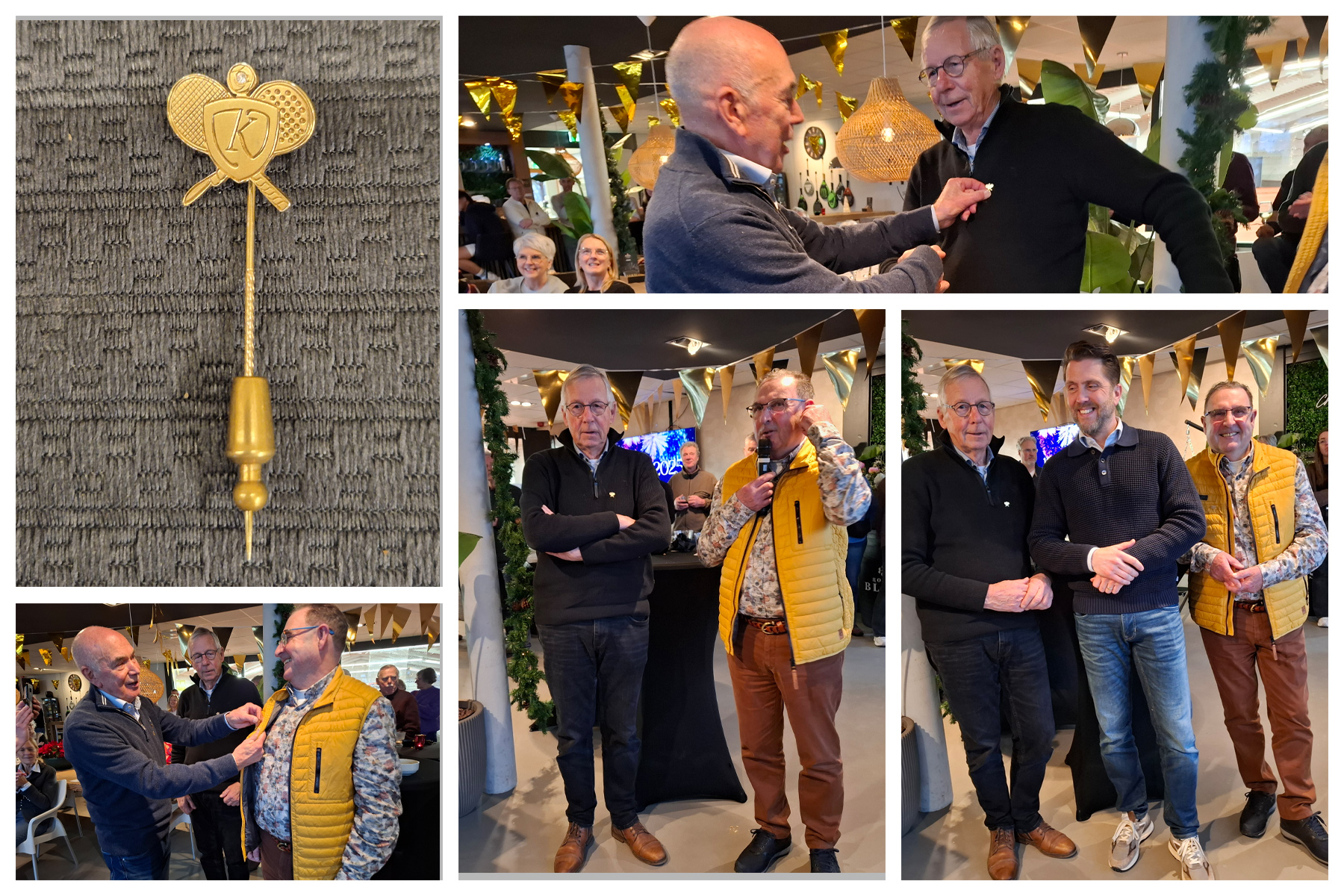 Ton Roks, erelid van Keltenwoud, spelde Dick de Bey en Jack Laanen de eerste erelidpenning op met de miniatuurtjes tennis en padel erin gegraveerd. Beiden zijn bij de ALV in november voorgedragen als erelid, dat is met instemming van de aanwezige leden goedgekeurd. Zowel Dick als Jack zetten zich al jaren in voor Keltenwoud en nog steeds zijn beiden actief bij onze club. Dick is onder andere bij de werkgroep onderhoud en renovatie van het park betrokken. Jack is de persoon achter het activiteitenbeheer van de banen, ook voor externe verhuur.