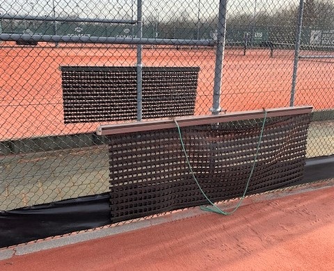 Langs onze tennisbanen hangen sleepnetten aan speciaal daarvoor gemonteerde haken. De netten zijn bedoeld om na ieder spel de baan te vegen. In cirkels van buiten naar binnen Doe dat dus a.u.b. ook! Het bevordert de levensduur van de baan en ook van je eigen spelplezier.