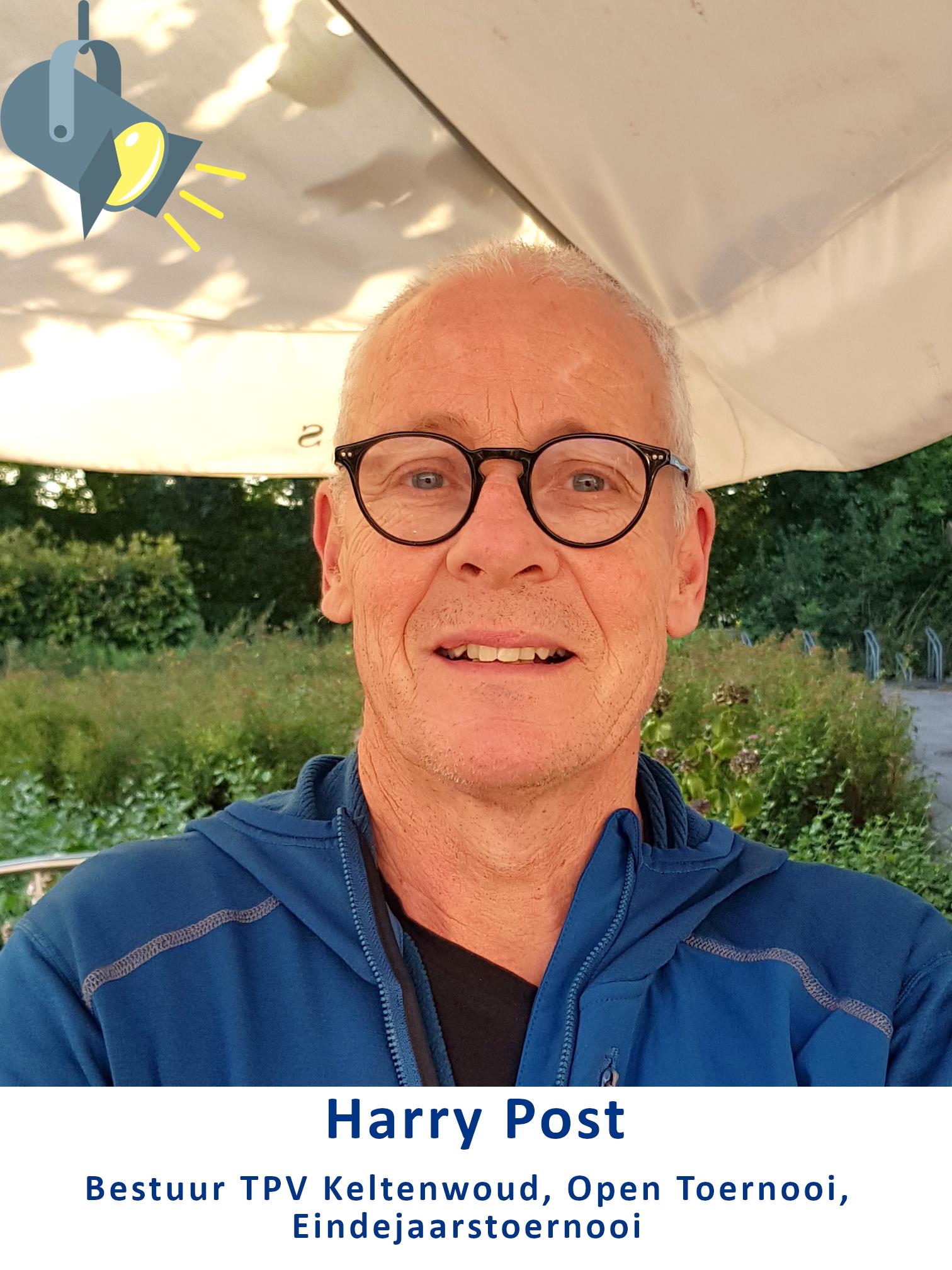 Harry Post is sinds maart 2022 bestuurslid van onze vereniging. Hij helpt ook al heel wat jaren bij het organiseren van het Open Toernooi en het Keltenwoud Eindejaarstoernooi.