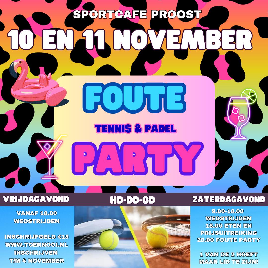 Namens Sportcafé Proost is er op vrijdagavond 10 en zaterdag 11 november een intern dubbeltoernooi, voor zowel tennis- als padelleden. Samen spelen met een niet-lid is ook mogelijk. Het thema is foute party, dus een gekke outfit aantrekken mag zeker!